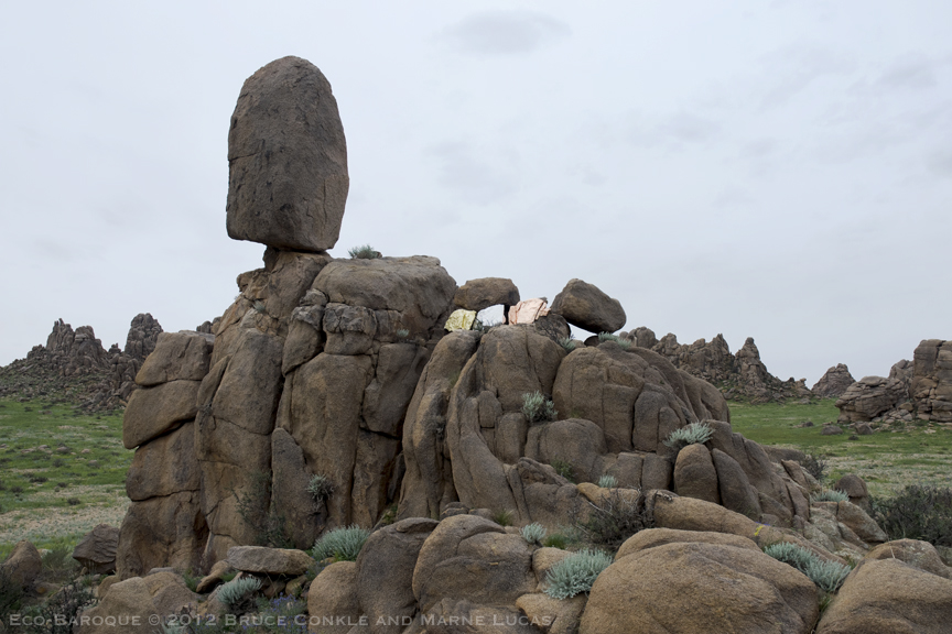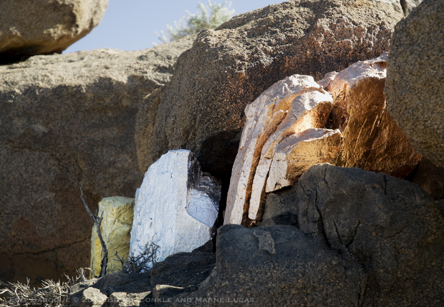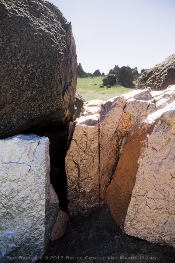 metal leaf on rock surfaces, applied with non-toxic adhesives to add brilliant detail to the landscape. |